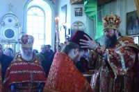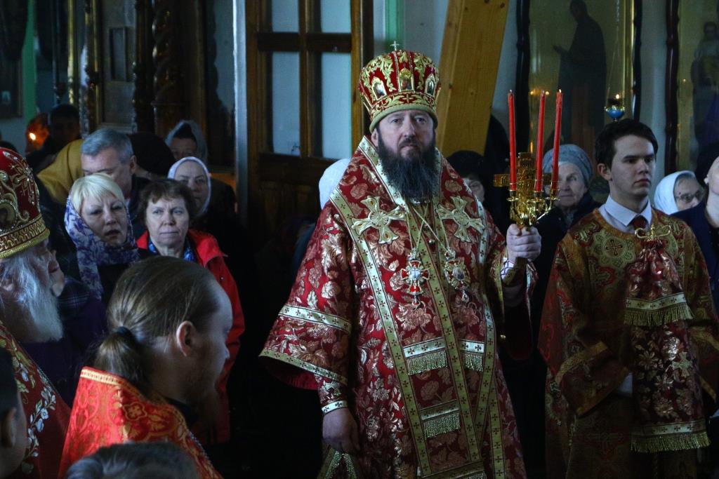 Перед причастием мирян проповедовал иерей Евгений Потылицын. После заамвонной молитвы был совершен крестный ход, после которого епископ Амфилохий поздравил духовенство и молящихся с престольным праздником и обратился к собравшимся со словами проповеди.