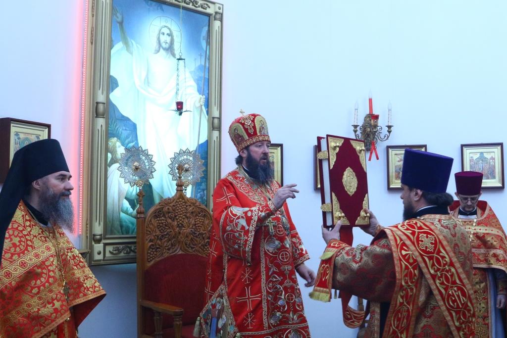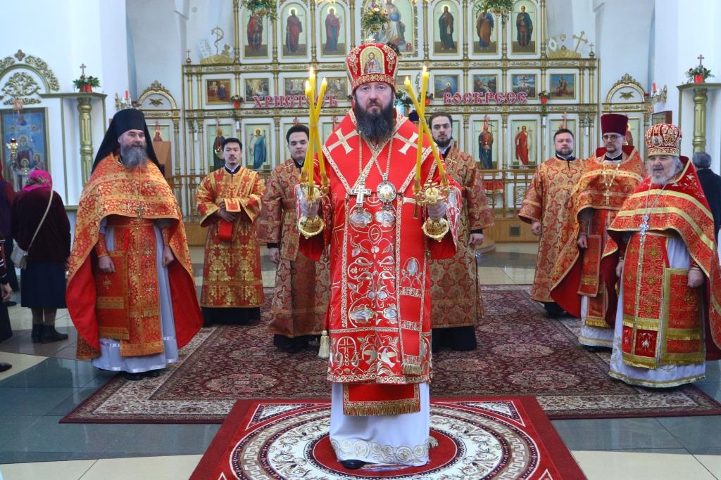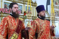 На воскресном богослужении молились сотрудники епархиального управления, насельники Свято-Троицкого мужского монастыря, прихожане и паломники главного храма епархии. Песнопения Божественной Литургии исполнял хор собора под управлением регента Н. Романцовой. Перед причастием мирян проповедовал священник Константин Дьяков.