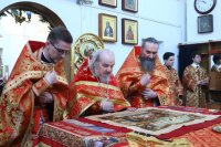 После проповеди епископ Амфилохий окропил молящихся святой водой и поздравил прихожанок кафедрального собора с праздником жен-мироносиц, пожелав им мира, спасения души, и твердой веры в Господа Иисуса Христа.