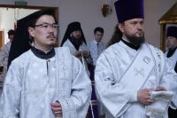 Архипастырю сослужили: ключарь главного храма Восточного Казахстана иеромонах Никодим (Авдеев), протоиерей Николай Темирбаев, клирики собора иерей Константин Дьяков, протодиакон Андрей Дудник, иеродиакон Мефодий (Шевчук), диакон Владимир Лаврешин, секретарь епархии диакон Илия Кван.