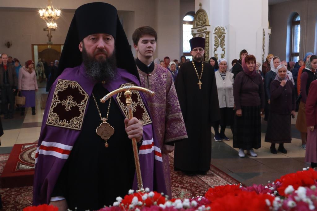Песнопения праздника и Божественной Литургии исполнял хор кафедрального собора под управлением Н. Романцовой. За богослужением молились прихожане главного храма Рудного Алтая, сотрудники епархиального управления, насельники Свято-Троицкого мужского монастыря города Усть-Каменогорска. Перед причастием мирян проповедовал ключарь кафедрального собора.