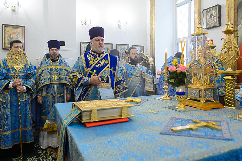 В завершение Литургии состоялось славление Пресвятой Богородице – духовенство и хор пропели тропарь, кондак и величание перед Абалацко-Знаменским образом Царицы Небесной. Участники богослужения также исполнили запевы святителю Николаю Чудотворцу, священномученику Александру Семипалатинскому и новомученикам и исповедникам Казахстанским.