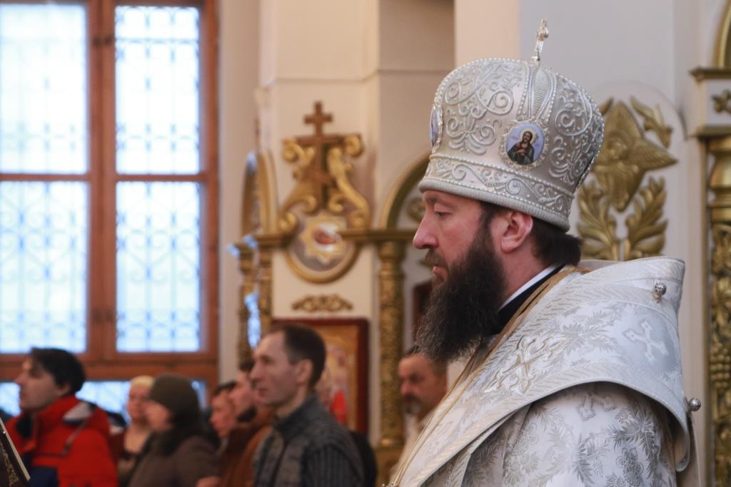 Его Преосвященству сослужили: духовник епархии архимандрит Спиридон (Теплухин), ключарь кафедрального собора иеромонах Никодим (Авдеев), протоиерей Николай Темирбаев, клирик храма иерей Алексий Клепиков, секретарь епархии диакон Илия Кван, протодиакон Андрей Дудник, диакон Владимир Лаврешин.
