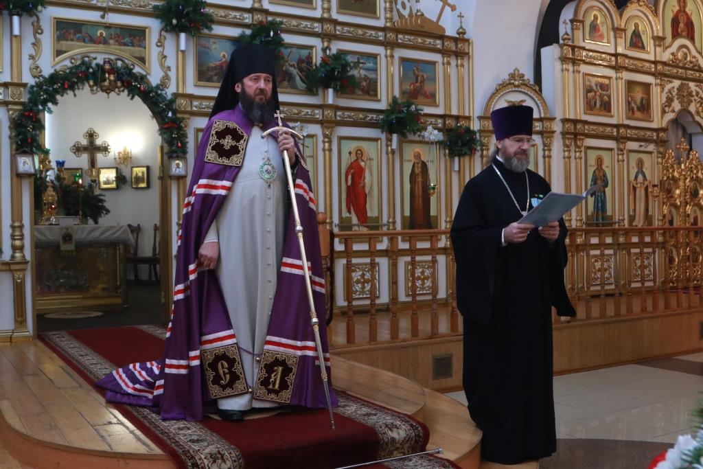По окончании Богослужения благочинный Усть-Каменогорского церковного округа иерей Алексий Анищенко огласил Рождественское послание епископа Амфилохия духовенству, монашествующим и боголюбивой пастве Усть-Каменогорской и Семипалатинской епархии.