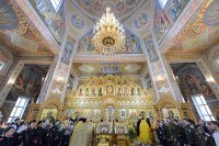 Песнопения исполняли хор Митрополичьего округа под управлением Заслуженного деятеля искусств России О.Н. Овчинникова и хор Софийского собора под управлением О.Г. Шульженко.