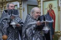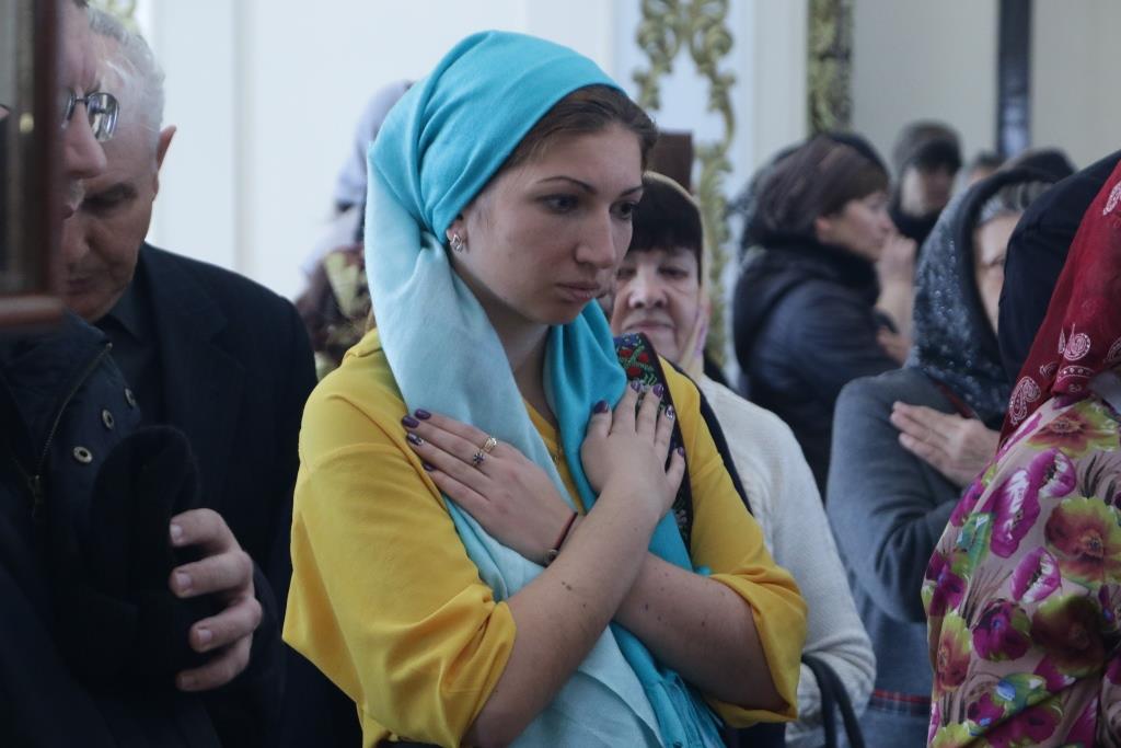 За богослужением молились насельники Свято-Троицкого мужского монастыря и прихожане кафедрального собора. Песнопения великопостной Литургии исполнял хор Андреевского кафедрального собора под управлением регента Н. Романцовой.