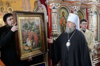 Для духовного утешения верующих на Литургию была принесена икона с изображением чуда воскрешения Спасителем праведного Лазаря Четверодневного с частью его гробницы из Вифании. Глава Митрополичьего округа передал образ в дар Астанайскому благочинию.