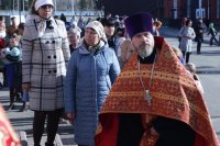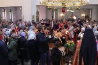 К началу богослужения по благословению митрополита Алматинского и Казахстанского Александра под своды главного храма Рудного Алтая была принесена великая святыня из Храма Гроба Господня – благодатный огонь.
