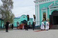 Перед причастием мирян проповедовал иерей Евгений Потылицын. После заамвонной молитвы был совершен крестный ход, после которого епископ Амфилохий поздравил духовенство и молящихся с престольным праздником и обратился к собравшимся со словами проповеди.