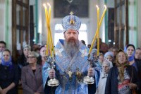 Праздничные песнопения исполнял хор Воскресенского собора под управлением регента Ю. Хохряковой. За богослужением молились: настоятельница Знаменско-Абалацкого женского монастыря игумения Марионилла (Помельникова) с сестрами обители, преподаватели и воспитанники приходской воскресной школы, прихожане Воскресенского собора, паломники с окрестных населенных пунктов. Перед причастием мирян проповедовал иерей Евгений Потылицын.