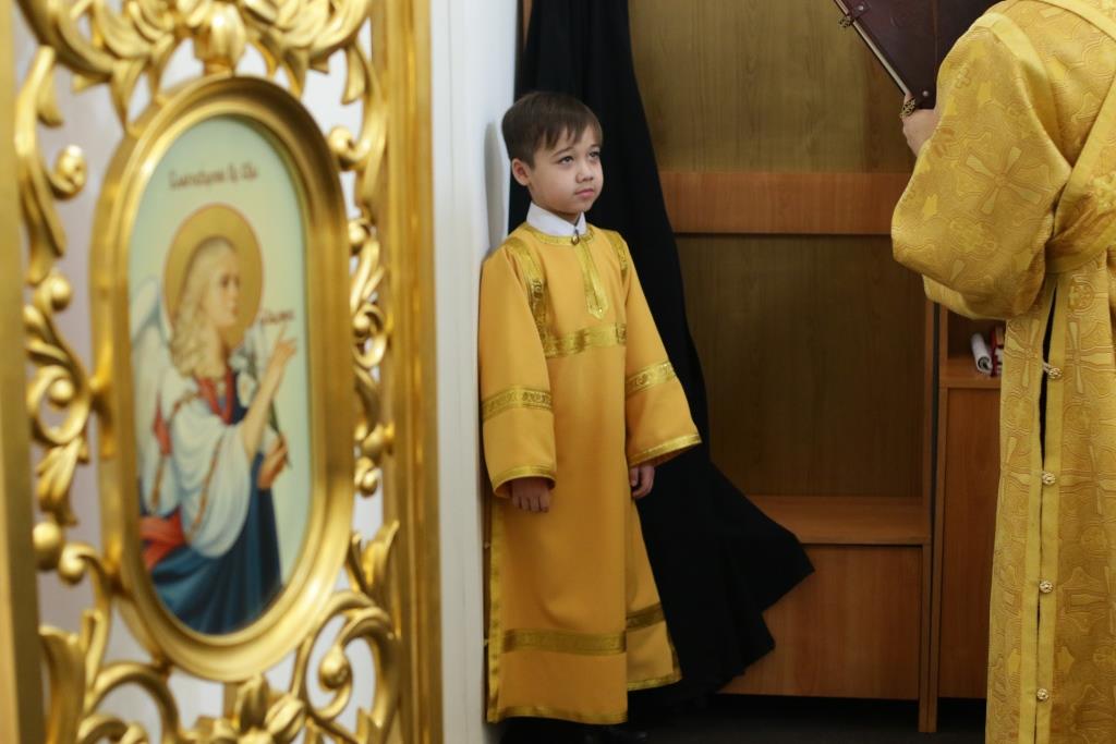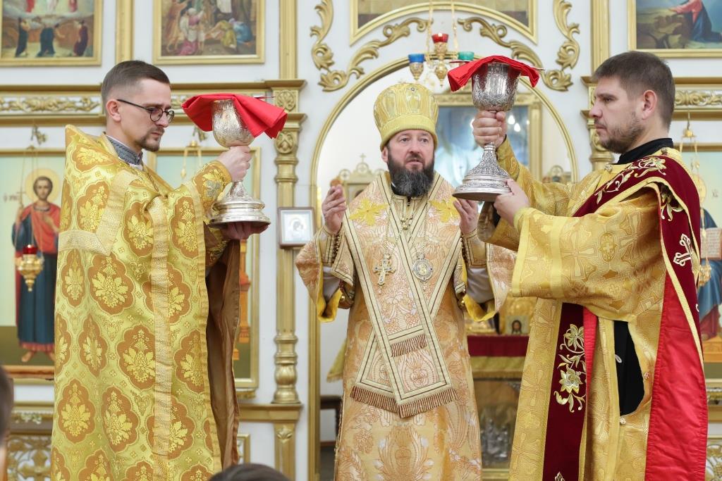 Песнопения Божественной Литургии и воскресного дня исполнял хор кафедрального собора под управлением регента Н.Романовой. За богослужением молились братия Свято-Троицкого мужского монастыря города Усть-Каменогорска, сотрудники епархиального управления и прихожане Андреевского собора. Перед причастием мирян проповедовал иеромонах Никодим (Авдеев).