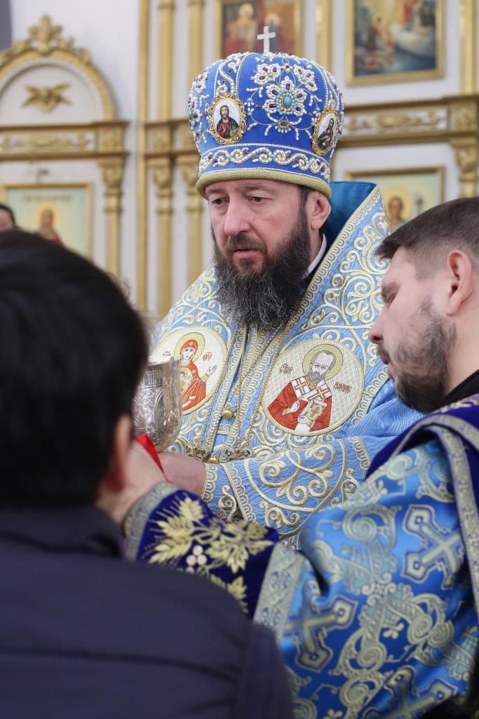 Перед причастием мирян проповедовал иеромонах Силуан (Магилев). В завершение Богослужения Архипастырь и духовенство совершили славление Пресвятой Богородице перед праздничной иконой.
