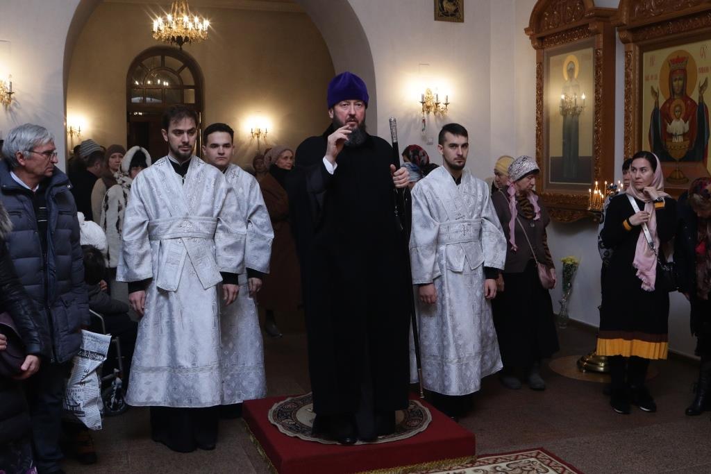 За богослужением пел хор род управлением регента Н. Романцовой. В канун Нового года в храме молились сотрудники епархиального управления, прихожане кафедрального собора и городских приходов, насельники Свято-Троицкого мужского монастыря.