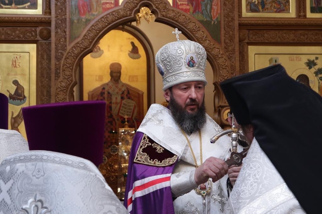 После окончания молебного пения епископ Амфилохия обратился к пастве со словами проповеди: