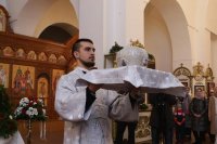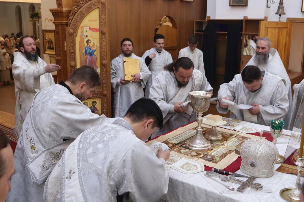 Владыке епископу сослужили духовник епархии архимандрит Спиридон (Теплухин), ключарь Андреевского собора иеромонах Никодим (Авдеев), клирик собора иерей Алексий Клепиков, секретарь Управляющего епархией иеромонах Силуан (Магилев), иеромонах Назарий (Шелыгин), секретарь епархии диакон Илия Кван, протодиакон Георгий Засыпкин, протодиакон Андрей Дудник, диакон Владимир Лаврешин.