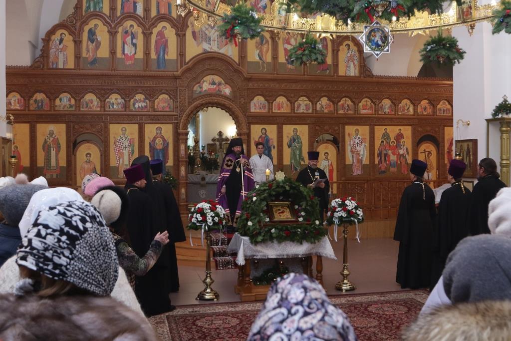 За рождественским богослужением молились сотрудники епархиального управления, насельники Свято-Троицкой обители, многочисленные прихожане. Праздничные песнопения исполнял хор Андреевского собора под управлением Н. Романцовой.