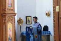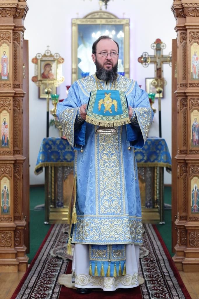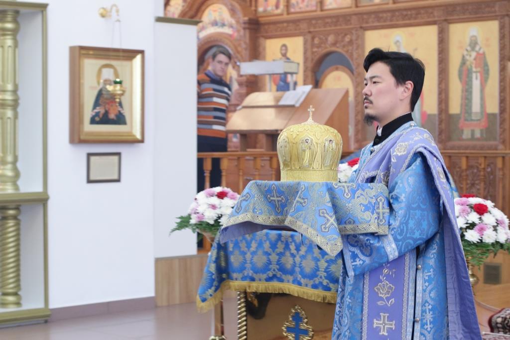 После заамвонной молитвы было совершено славление Господу Иисусу и Его Пречистой Матери со всенародным пением «Царице моя Предлагая». В завершение праздничной Литургии Владыка епископ поздравил духовенство и мирян с праздником и обратился к народу Божию со словами наставления.