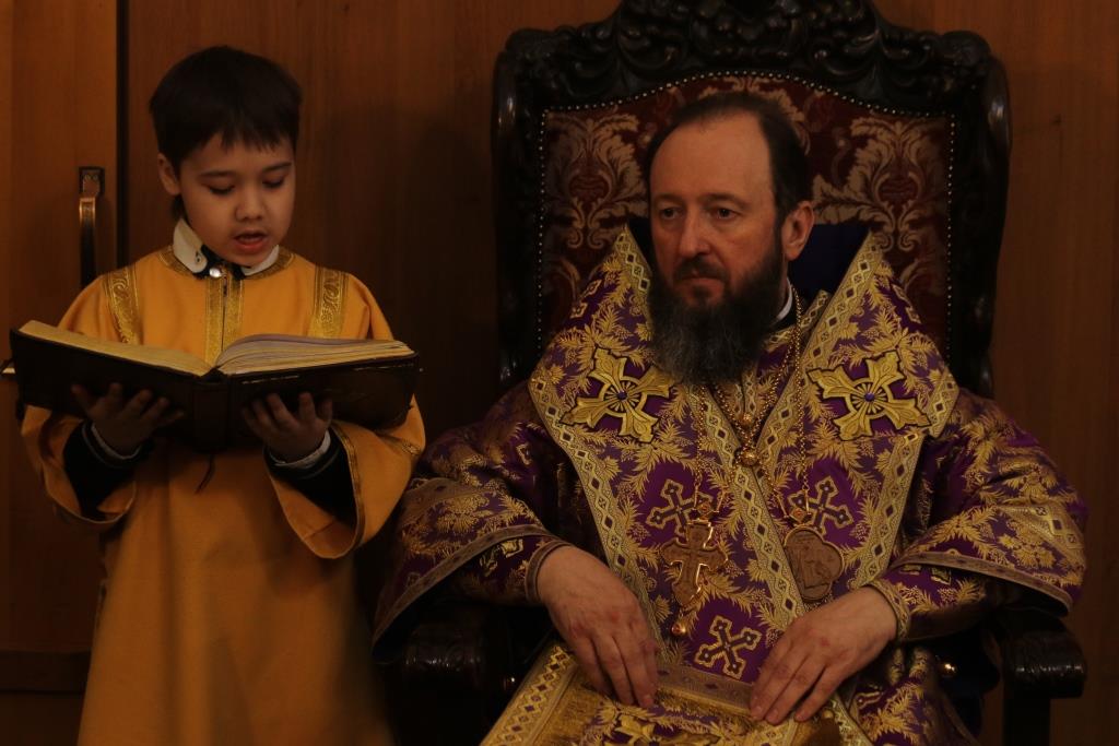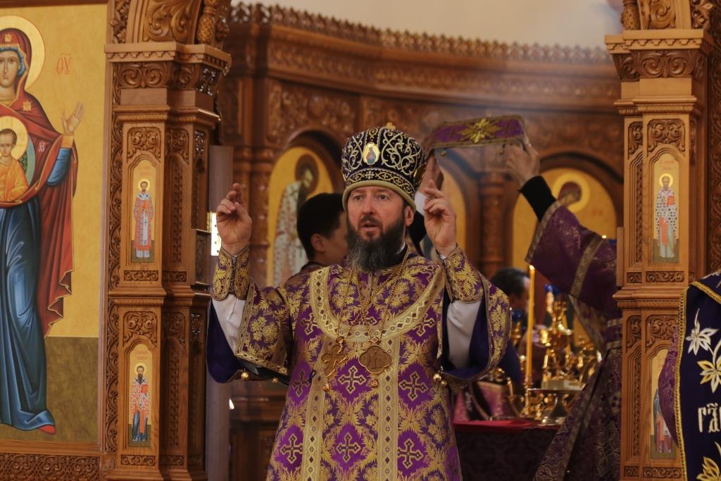 В воскресный день Преосвященнейший епископ Усть-Каменогорский и Семипалатинский Амфилохий совершил Божественную литургию святителя Василия Великого в Андреевском кафедральном соборе столицы Рудного Алтая.