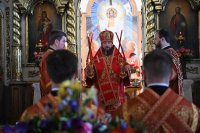 На Литургии в соборе пребывал ковчег с мощами святителя и чудотворца Николая, доставленный накануне владыкой митрополитом.