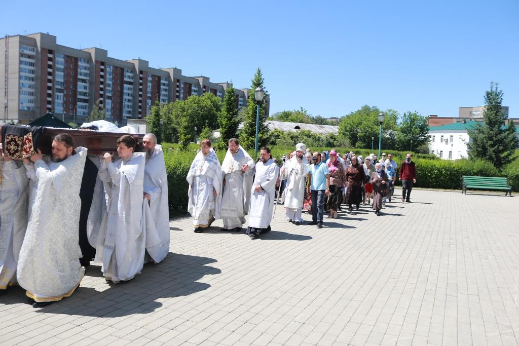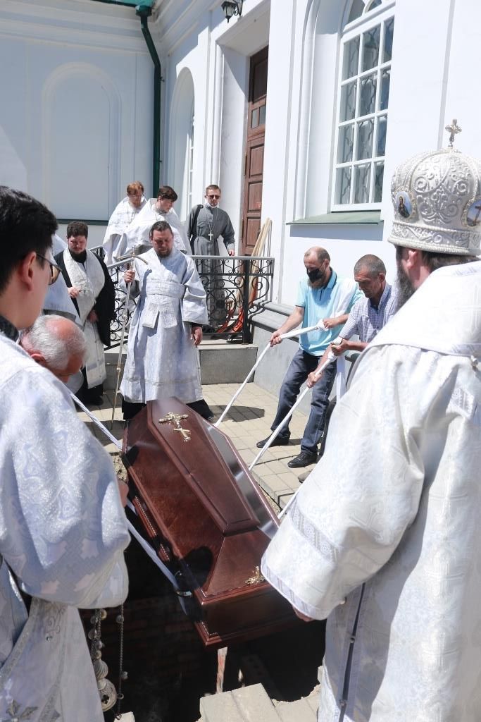 Чин отпевания совершил Преосвященнейший епископ Амфилохий в сослужении духовенства Усть-Каменогорского церковного округа. О упокоении души архимандрита Спиридона молились многочисленные прихожане храмов города Усть-Каменогорска, насельники Свято-Троицкого мужского монастыря, сотрудники епархиального управления, духовные чада, родные и близкие новопреставленного. Отец Спиридон был погребен у алтаря Свято-Троицкого храма.