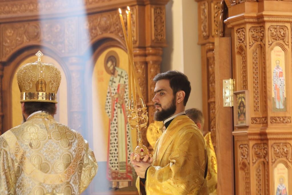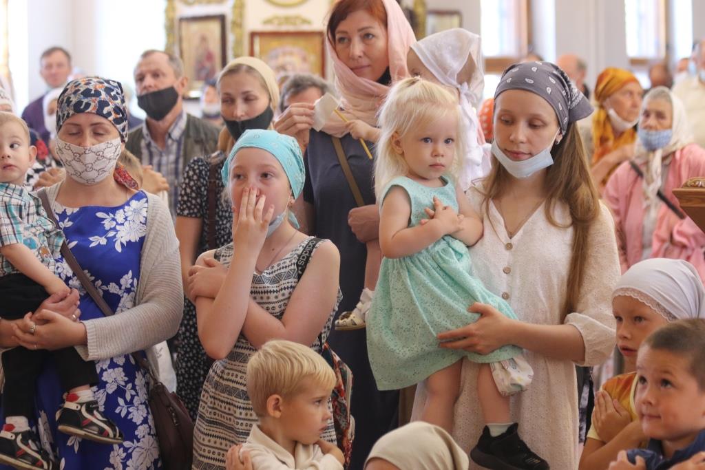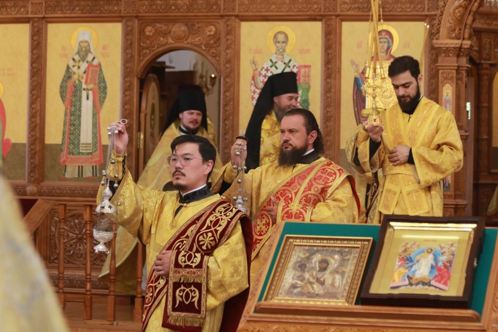 За праздничным богослужением молились сотрудники епархиального управления, насельники Свято-Троицкого мужского монастыря города Усть-Каменогорска и прихожане кафедрального собора. Песнопения Божественной Литургии исполнял хор под управлением регента В. Федоровой. Проповедь перед причастием мирян произнес иеромонах Силуан (Магилев).