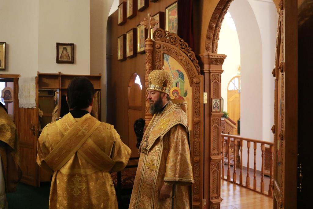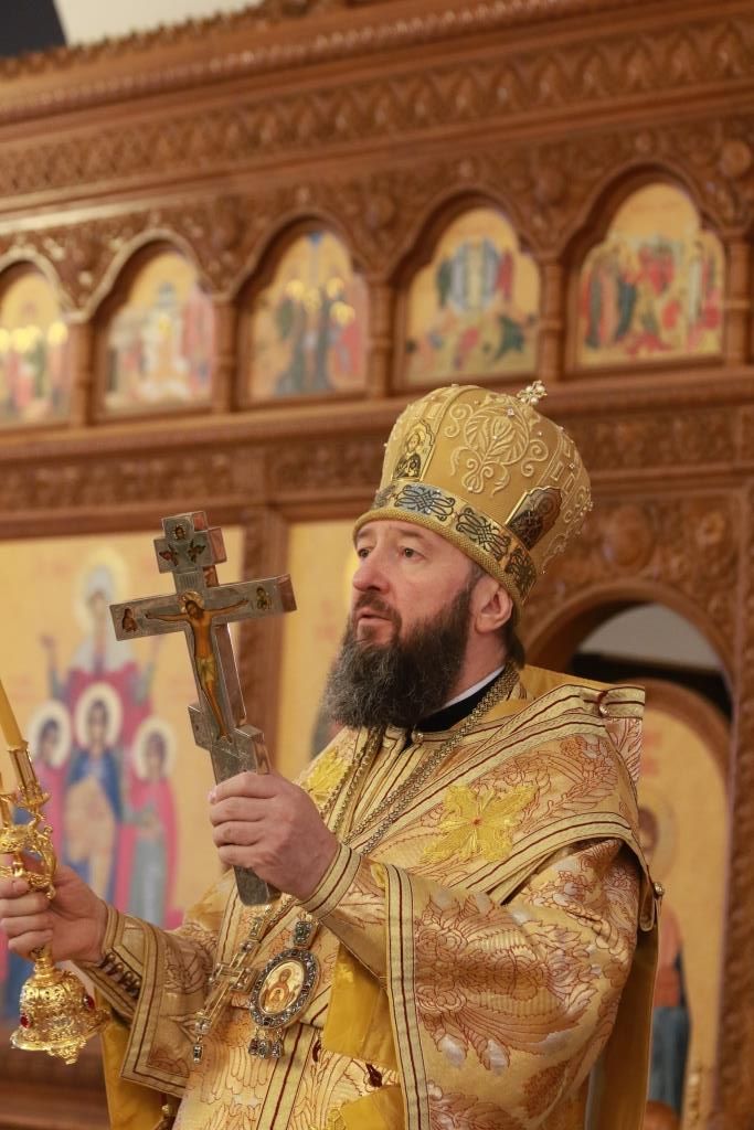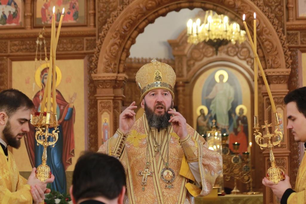 В завершение воскресной Литургии Преосвященнейший Владыка поздравил прихожан и клир с праздником и обратился к народу Божиему со словами Архипастырской проповеди.