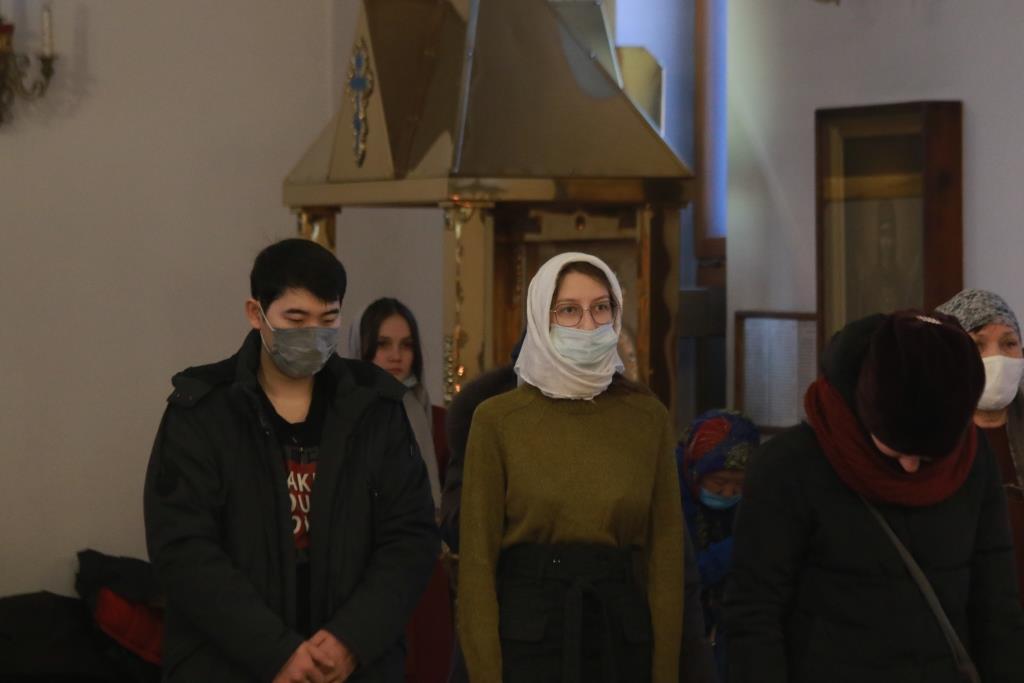 За богослужением молились прихожане Андреевского собора, преподаватели и воспитанники Центральной воскресной школы, сотрудники епархиального управления и насельники Свято-Троицкого мужского монастыря города Усть-Каменогорска. Хор под управлением регента Н. Романцовой исполнял песнопения воскресного дня и Божественной Литургии. Перед причастием мирян проповедовал иеромонах Силуан (Магилев).
