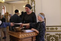 Его Преосвященству сослужили: ключарь собора иеромонах Никодим (Авдеев) и духовенство главного храма епархии. Песнопения праздника Входа Господня в Иерусалим исполнял хор под управлением регента Н. Романцовой. За вечерним богослужением совершалась лития – сугубое моление с освящением пшеницы, хлеба, вина и елея.