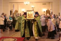 Под пение тропаря преподобному Сергию ковчег с частицей мощей был внесён под своды кафедрального собора, после чего Владыка архиепископ возглавил служение торжественного молебна. За богослужением пел сводный хор под управлением регента Н. Романцовой. В храме молились прихожане кафедрального собора и паломники с городских приходов.