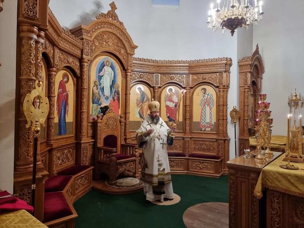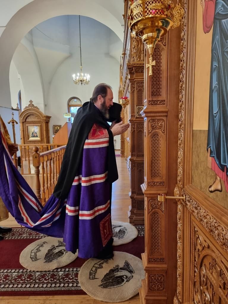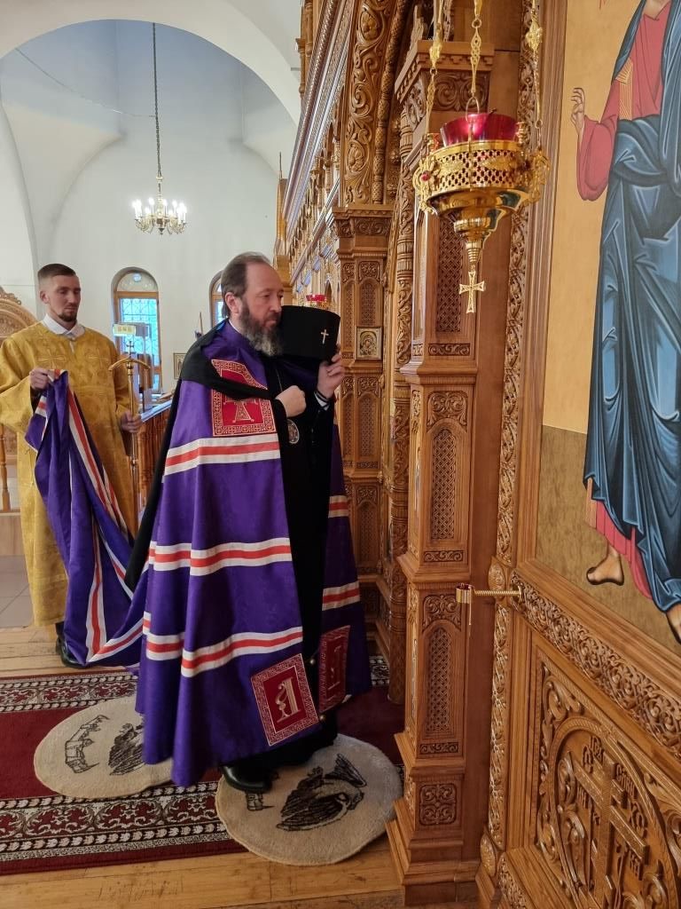 После проповеди Преосвященнейший Архипастырь пожелал всем мира и спасения души и окропил прихожан святой водой.