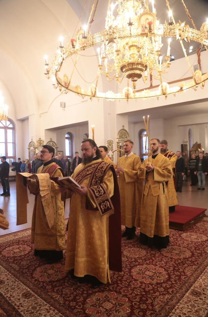 В воскресный день архиепископ Амфилохий, Управляющий Усть-Каменогорской и Семипалатинской епархией, возглавил служение Божественной Литургии святителя Иоанна Златоуста в Андреевском кафедральном соборе столицы Рудного Алтая. Его Высокопреосвященству сослужили: ключарь кафедрального собора иеромонах Никодим (Авдеев), клирики собора иерей Константин Дьяков и иеромонах Мефодий (Шевчук), секретарь епархии диакон Илия Кван, протодиакон Георгий Засыпкин, протодиакон Андрей Дудник. Песнопения Литургии исполнял хор кафедрального собора под управлением регента Н. Романцовой.