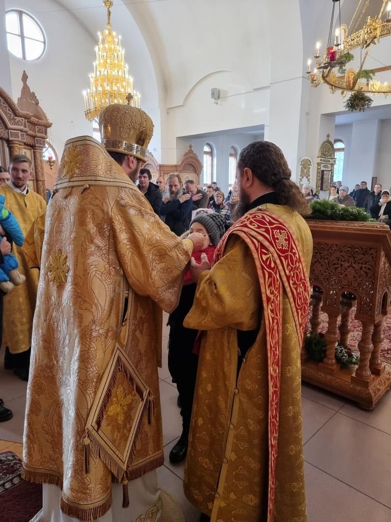 За архипастырским богослужением молились насельники Свято-Троицкого мужского монастыря города Усть-Каменогорска, преподаватели и воспитанники Центральной воскресной школы, прихожане кафедрального собора и сотрудники епархиального управления. Перед причастием мирян проповедь произнёс иеромонах Мефодий (Шевчук).