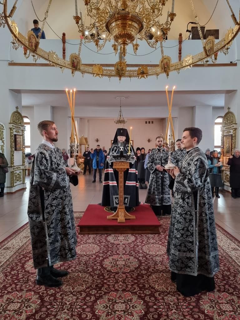 В первый день Святой Четыредесятницы в главном храме Восточного Казахстана архиепископ Усть-Каменогорский и Семипалатинский Амфилохий возглавил служение Великого повечерия с чтением первой части покаянного канона преподобного Андрея Критского.