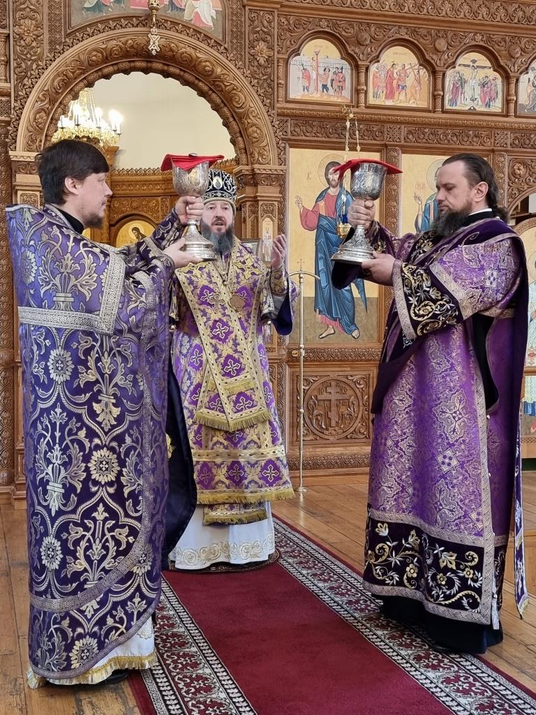 В четверг Страстной седмицы Управляющий Усть-Каменогорской и Семипалатинской епархией Высокопреосвященнейший архиепископ Амфилохий возглавил служение Вечерни в соединении с Божественной Литургией святителя Василия Великого в кафедральном соборе во имя святого апостола Андрея Первозванного города Усть-Каменогорска. Архипастырю сослужили: ключарь кафедрального собора иеромонах Никодим (Авдеев), клирики собора иерей Роман Подрезов, иерей Константин Дьяков, секретарь епархии диакон Илия Кван, протодиакон Андрей Дудник.