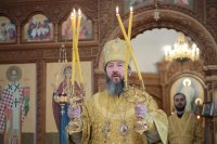 Его Высокопреосвященству сослужили: ключарь кафедрального собора иеромонах Никодим (Авдеев), клирики кафедрального собора иерей Роман Подрезов и иерей Константин Дьяков, протодиакон Андрей Дудник.