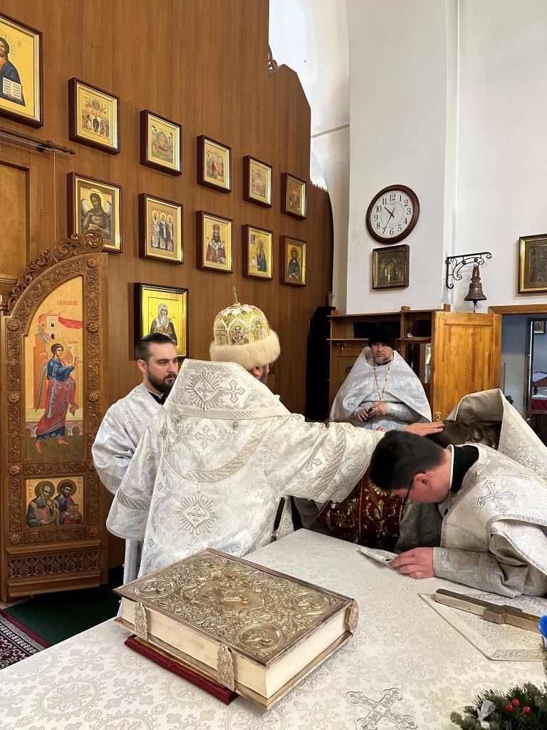Песнопения Богоявления Господня и Божественной Литургии исполнял хор кафедрального собора (регент Н. Романцова). В храме молились и причащались Святых Таин прихожане и паломники Андреевского собора, сотрудники епархиального управления, преподаватели и воспитанники Центральной воскресной школы. Перед причащением мирян проповедовал священник Виталий Адаменков.