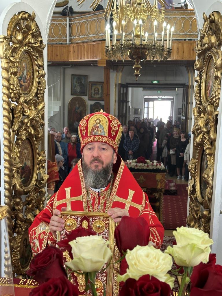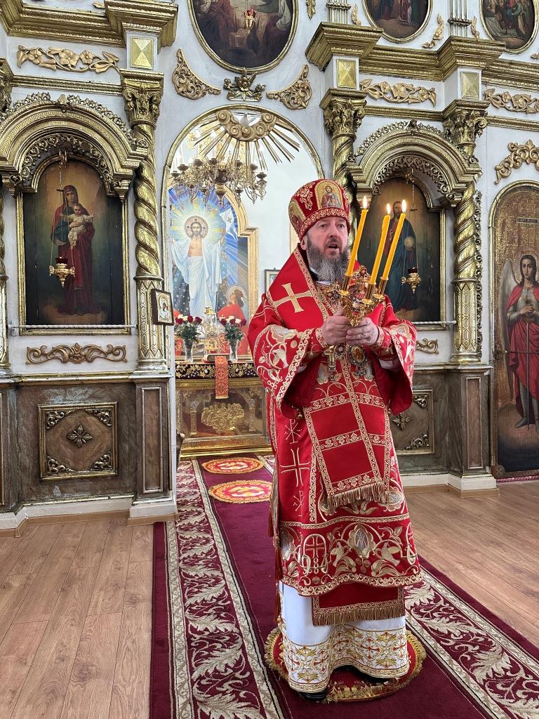 В храме молились и причащались Святых Христовых Таин прихожане Воскресенского собора, преподаватели и воспитанники приходской воскресной школы, паломники с городских приходов и окрестных населённых пунктов. После заамвонной молитвы Архипастырь с клириками и народом Божиим совершил крестный ход вокруг храма и славление Воскресшему Христу. Завершая престольное торжество, Владыка архиепископ поздравил собравшихся с великим праздником Пасхи Христовой и произнёс слова наставления.
