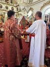 К празднику Святой Пасхи на малом входе Архипастырь наградил иереев Димитрия Нектерова и Виталия Екидина правом ношения наперсного золотого креста.
