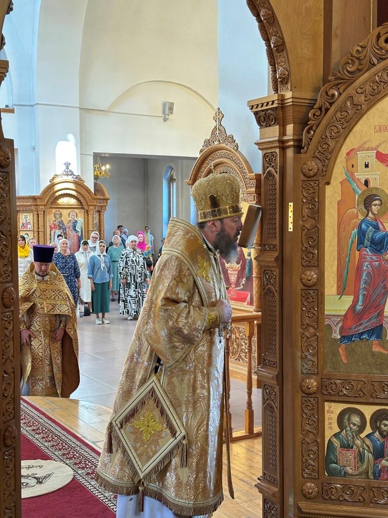 Архиепископ Усть-Каменогорский и Семипалатинский Амфилохий совершил Божественную Литургию святителя Иоанна Златоуста в Андреевском кафедральном соборе Усть-Каменогорска. Владыке сослужили: ключарь Андреевского собора иеромонах Никодим (Авдеев), клирик кафедрального собора иерей Роман Подрезов, секретарь епархии диакон Илия Кван.