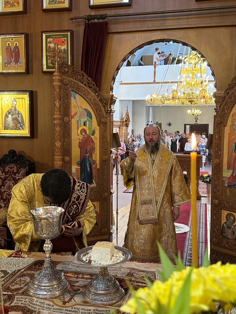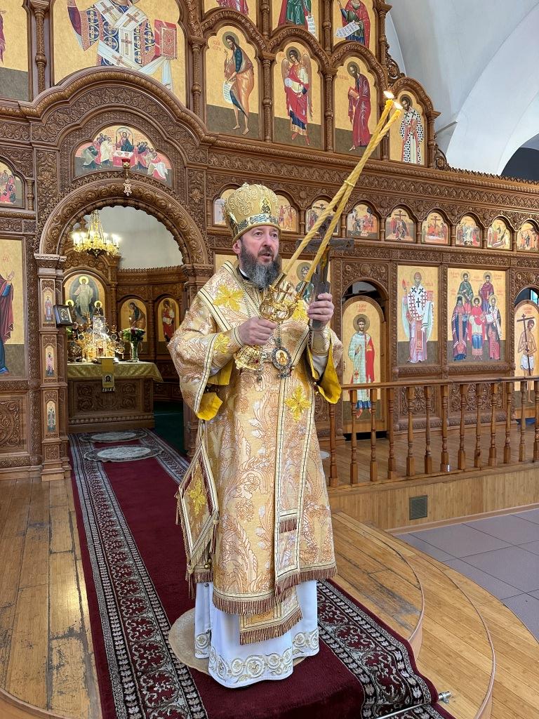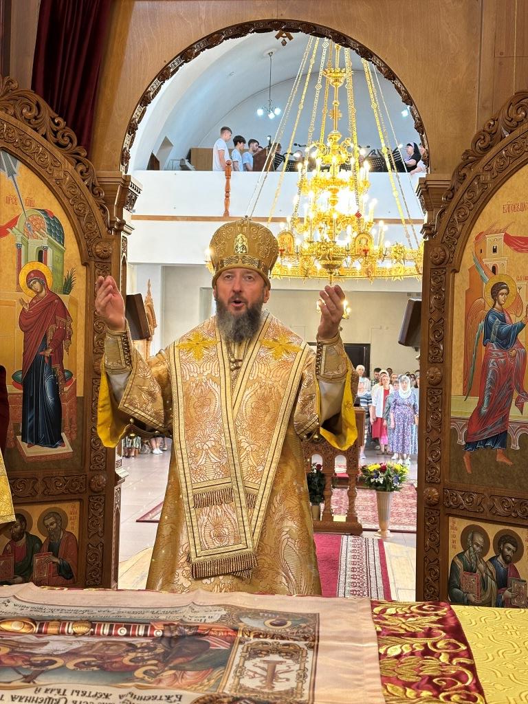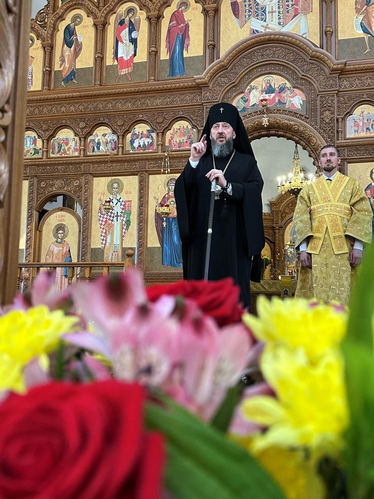 После окончания Божественной Литургии было совершено славление всем русским святым, после которого архиепископ Амфилохий обратился к прихожанам со словами наставления.