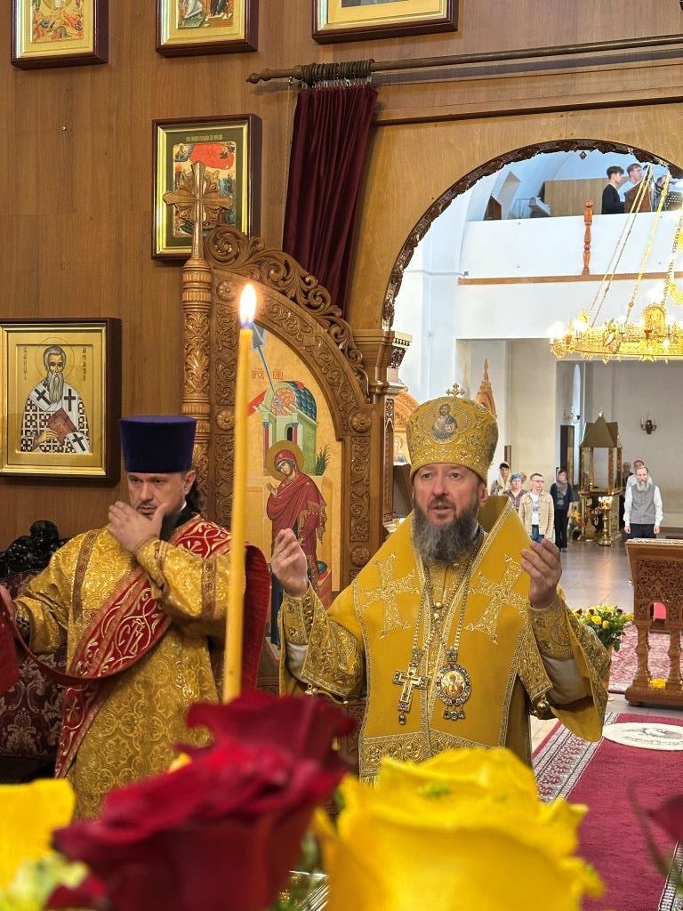Песнопения праздника и Божественной Литургии исполнял хор Андреевского кафедрального собора под управлением регента Н. Романцовой. За богослужением молились прихожане главного храма Восточного Казахстана, насельники Свято-Троицкого мужского монастыря города Усть-Каменогорска и сотрудники епархиального управления.