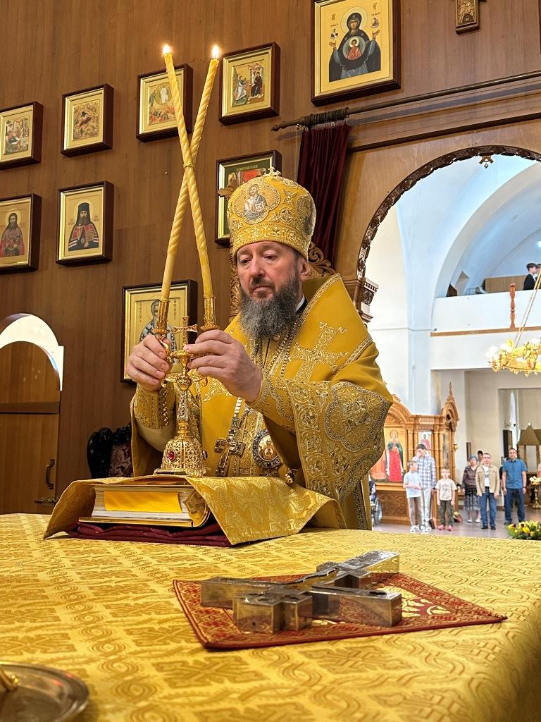 После заамвонной молитвы было совершено славление святым первоверховным апостолам; архиепископ Амфилохий вознес молитву проповедникам Евангельского учения. В завершение праздничного богослужения Высокопреосвященнейший Владыка обратился к пастве со словами проповеди.