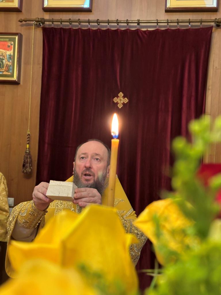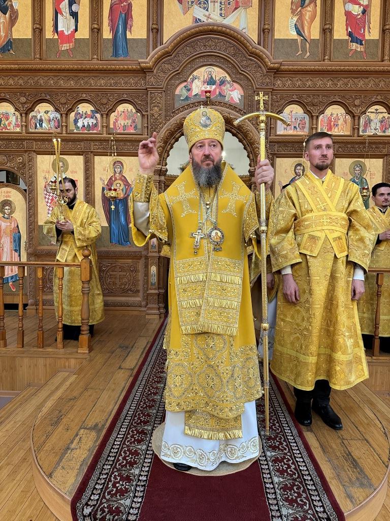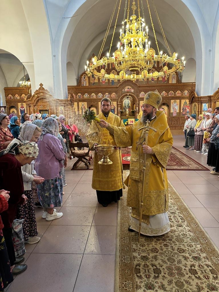 Затем Владыка архиепископ благословил паству и окропил молящихся святой водой.