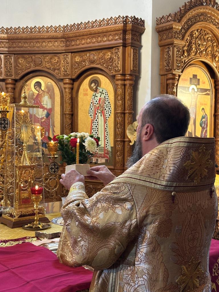 За богослужением молились прихожане главного храма Восточного Казахстана, насельники Свято-Троицкого мужского монастыря города Усть-Каменогорска и сотрудники епархиального управления. Песнопения Божественной Литургии исполнял хор Андреевского собора, регент Н.Романцова. Перед причастием мирян проповедовал священник Константин Дьяков.