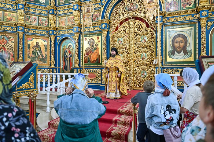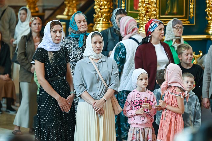 За Литургией молились: сотрудники Астанайского епархиального управления, активисты Астанайского православного молодежного движения, преподаватели и воспитанники центральной воскресной школы. Проповедь по запричастном стихе произнес иеромонах Димитрий (Байдек). В завершение богослужения Глава Митрополичьего округа обратился к собравшимся со словом поучения.
