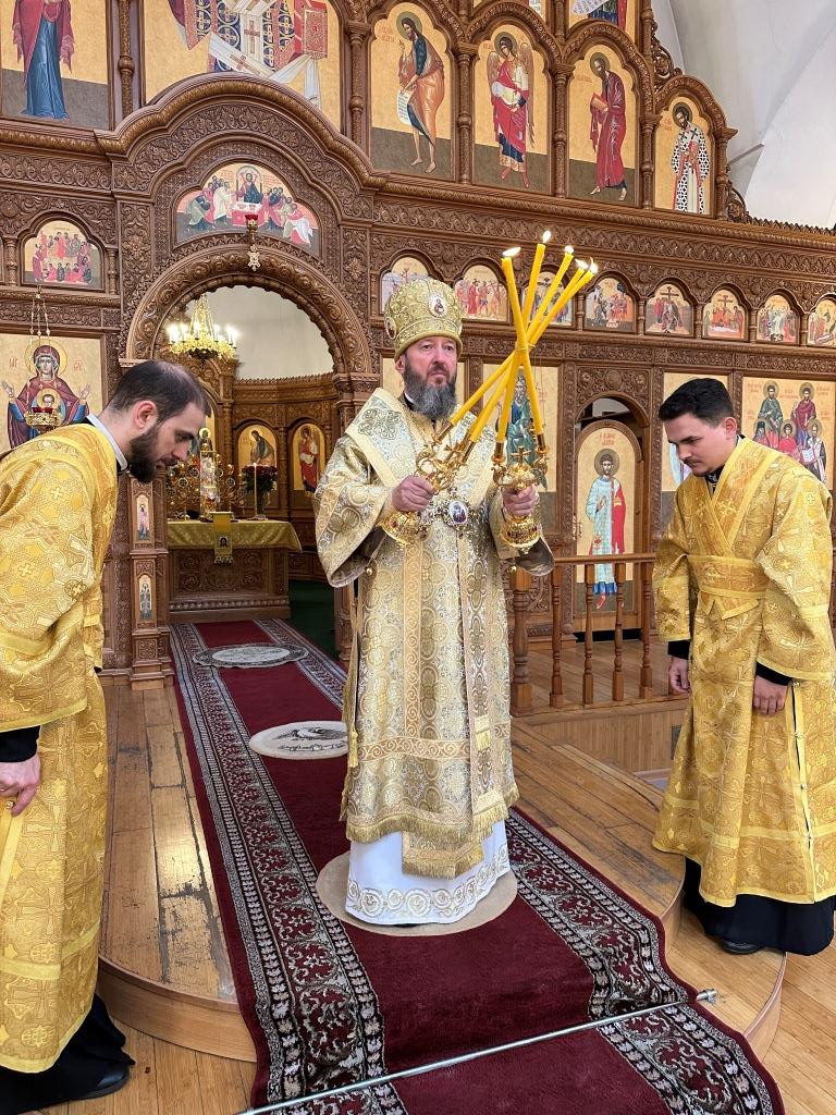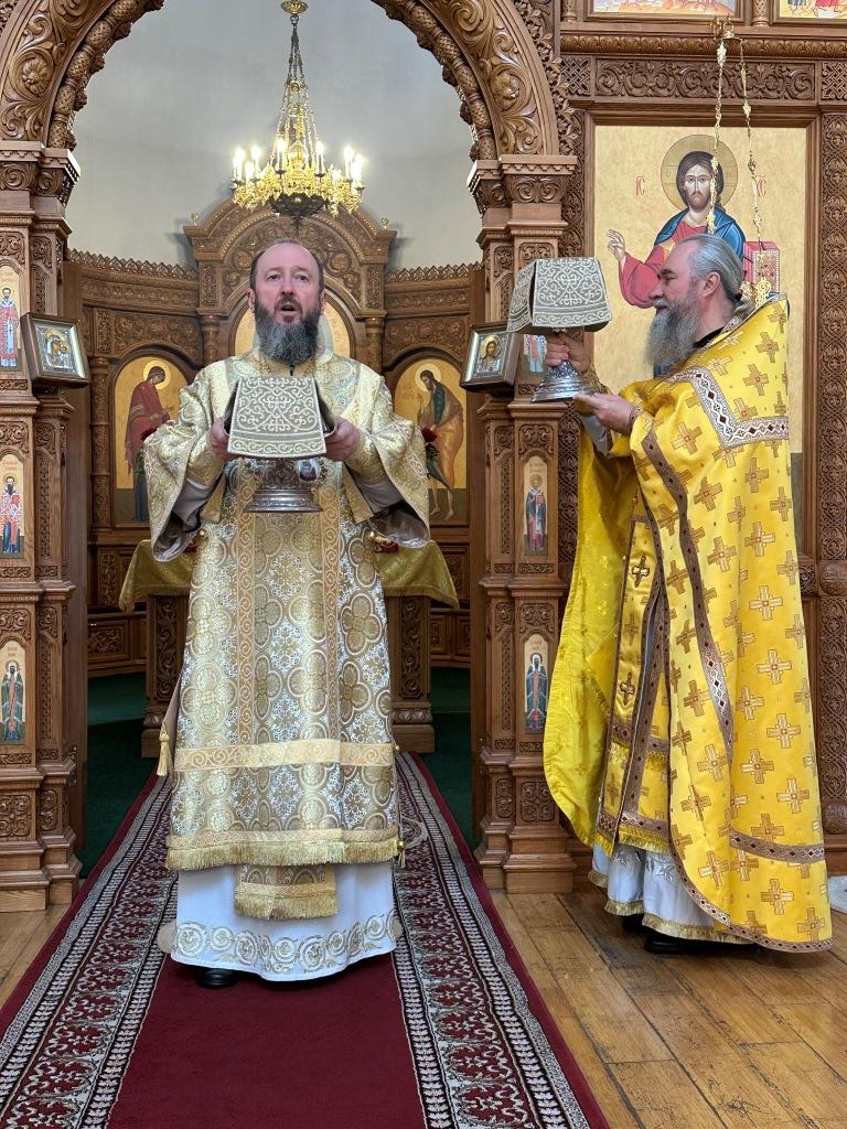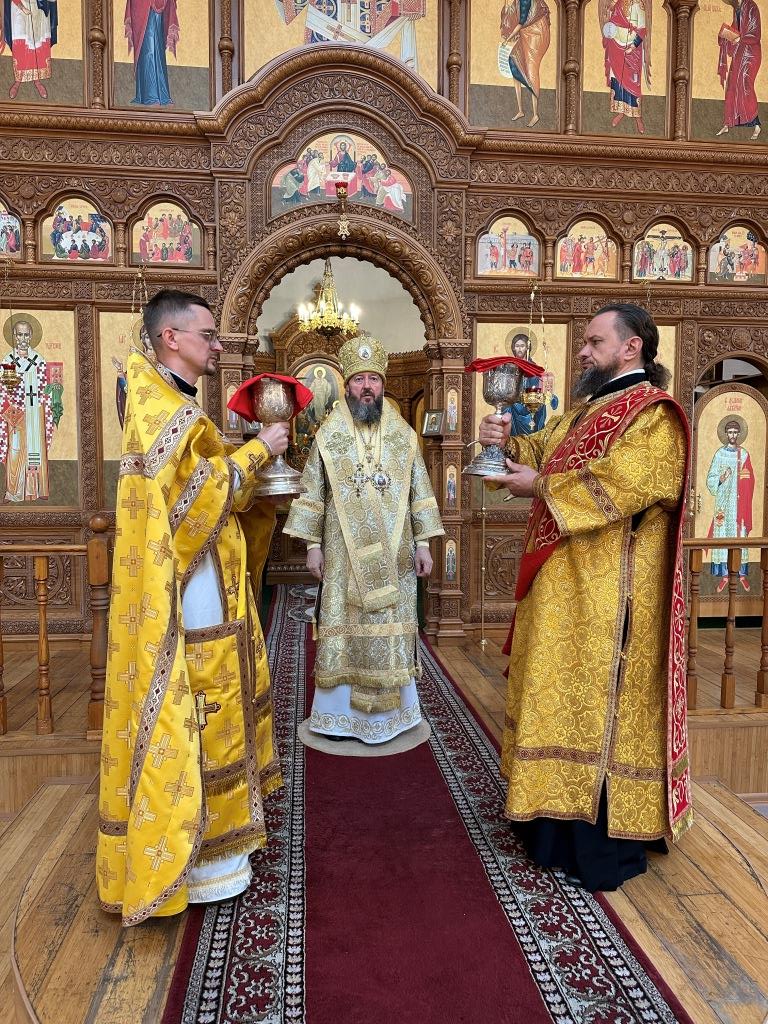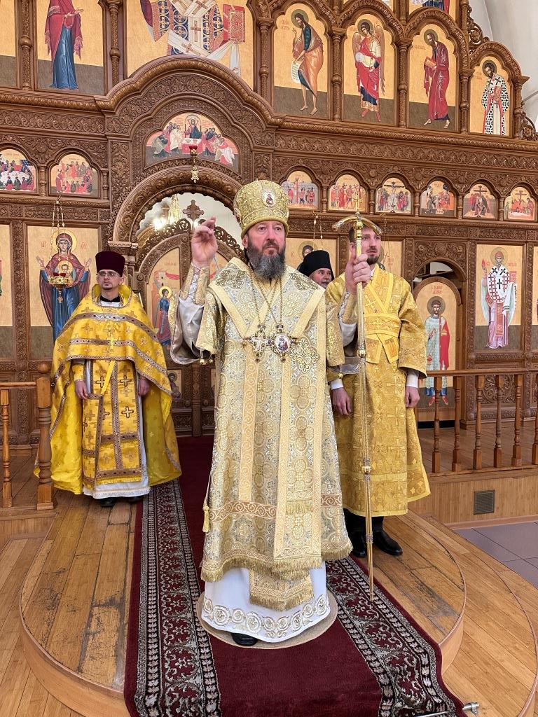Архиепископ Усть-Каменогорский и Семипалатинский Амфилохий возглавил служение Божественной Литургии святителя Иоанна Златоуста в Андреевском кафедральном соборе города Усть-Каменогорска. Его Высокопреосвященству сослужили: ключарь кафедрального собора иеромонах Никодим (Авдеев), клирик собора иерей Константин Дьяков, протодиакон Андрей Дудник.