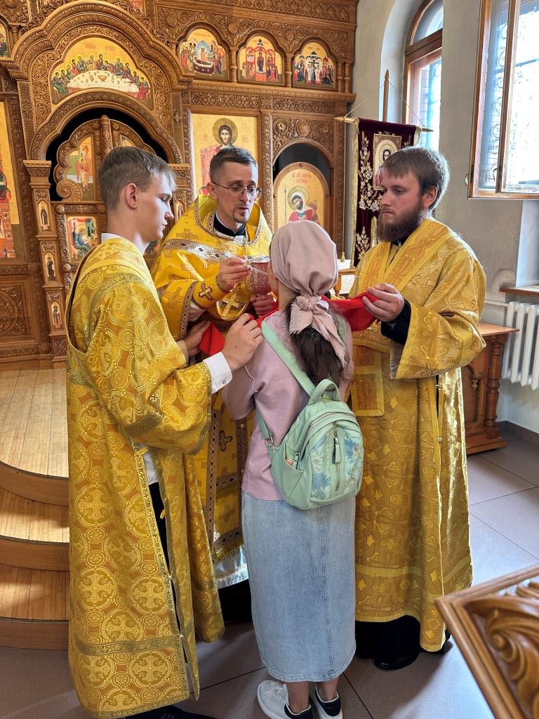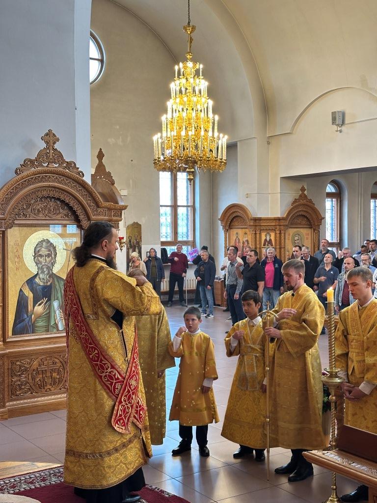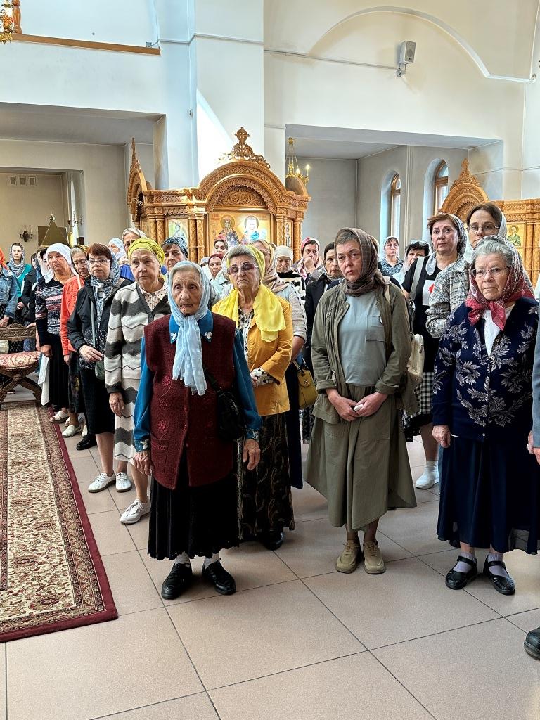 За воскресным богослужением молились насельники Свято-Троицкого мужского монастыря города Усть-Каменогорска, сотрудники епархиального управления и прихожане главного храма епархии. Литургические снопения исполнял хор кафедрального собора под управлением регента Н. Романцовой. Перед причастием мирян проповедовал священник Константин Дьяков.