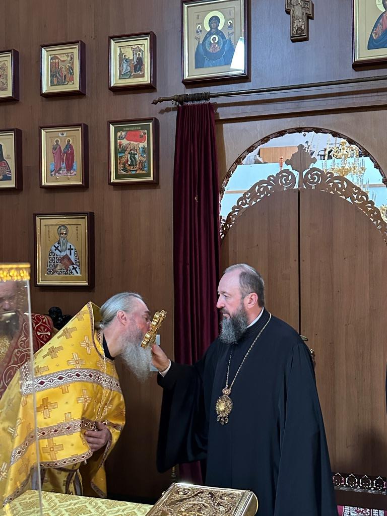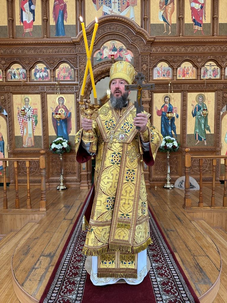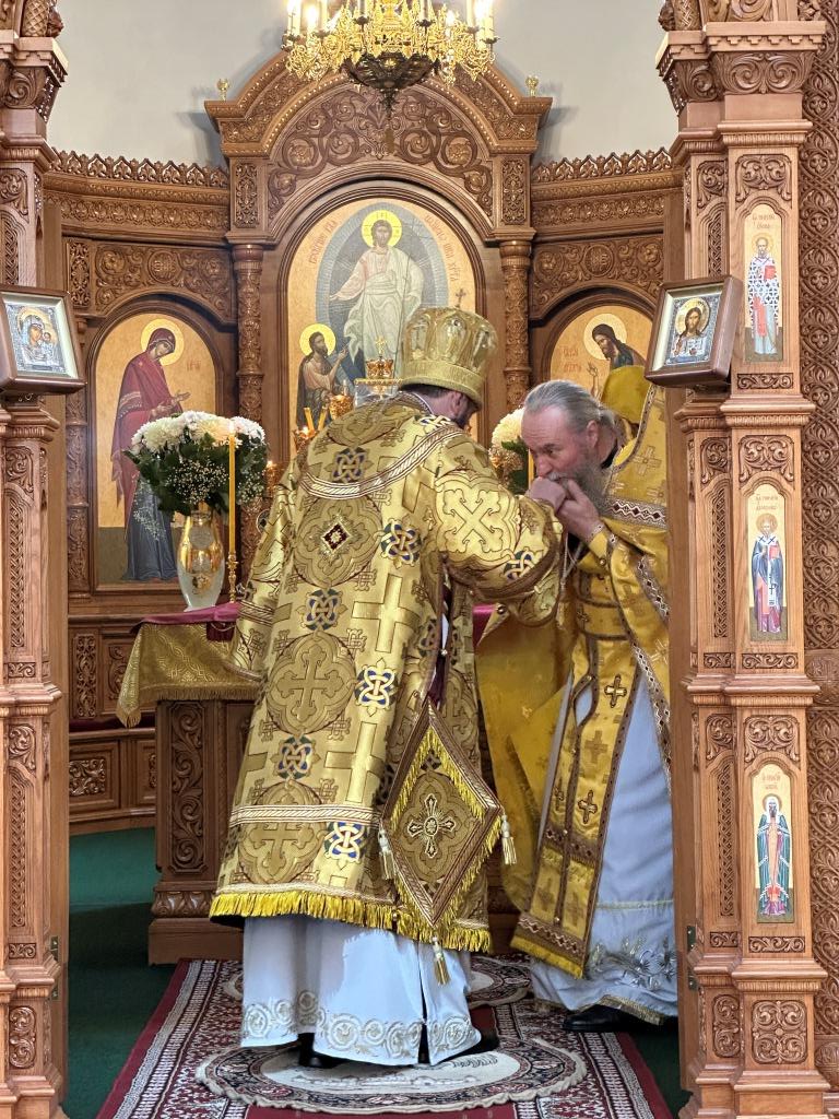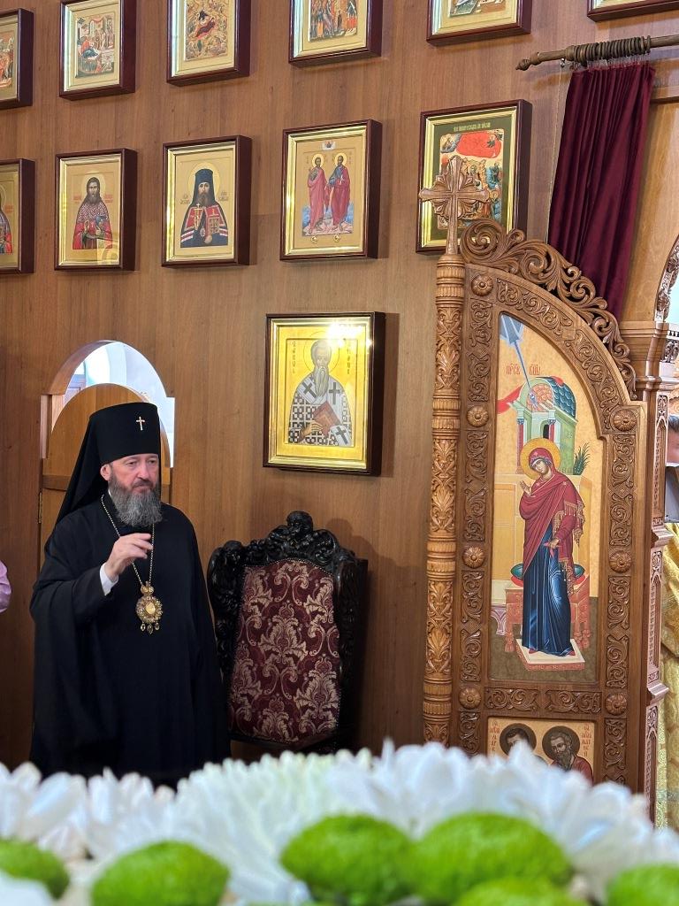 Его Высокопреосвященству сослужили: ключарь Андреевского собора иеромонах Никодим (Авдеев), клирик собора иерей Виталий Адаменков, протодиакон Андрей Дудник, секретарь епархии диакон Илия Кван. Хор род управлением регента Н. Романцовой исполнял богослужебные песнопения. Проповедь на запричастном стихе произнес иерей Виталий Адаменков.