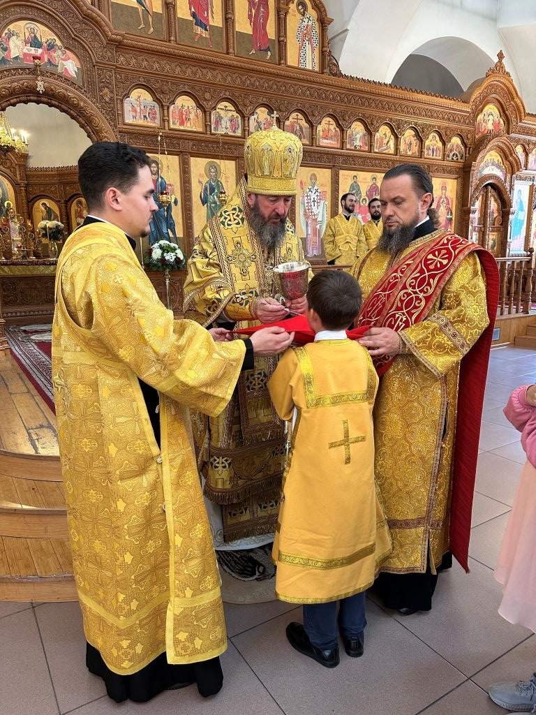 За литургией молились и причащались Святых Христовых Таин прихожане кафедрального собора, сотрудники епархиального управления и насельники Усть-Каменогорского Свято-Троицкого мужского монастыря. После заамвонной молитвы архиепископ Амфилохий обратился к прихожанам со словами проповеди.