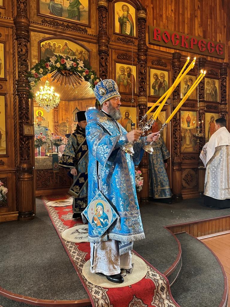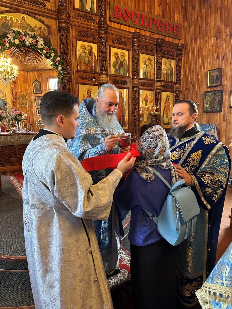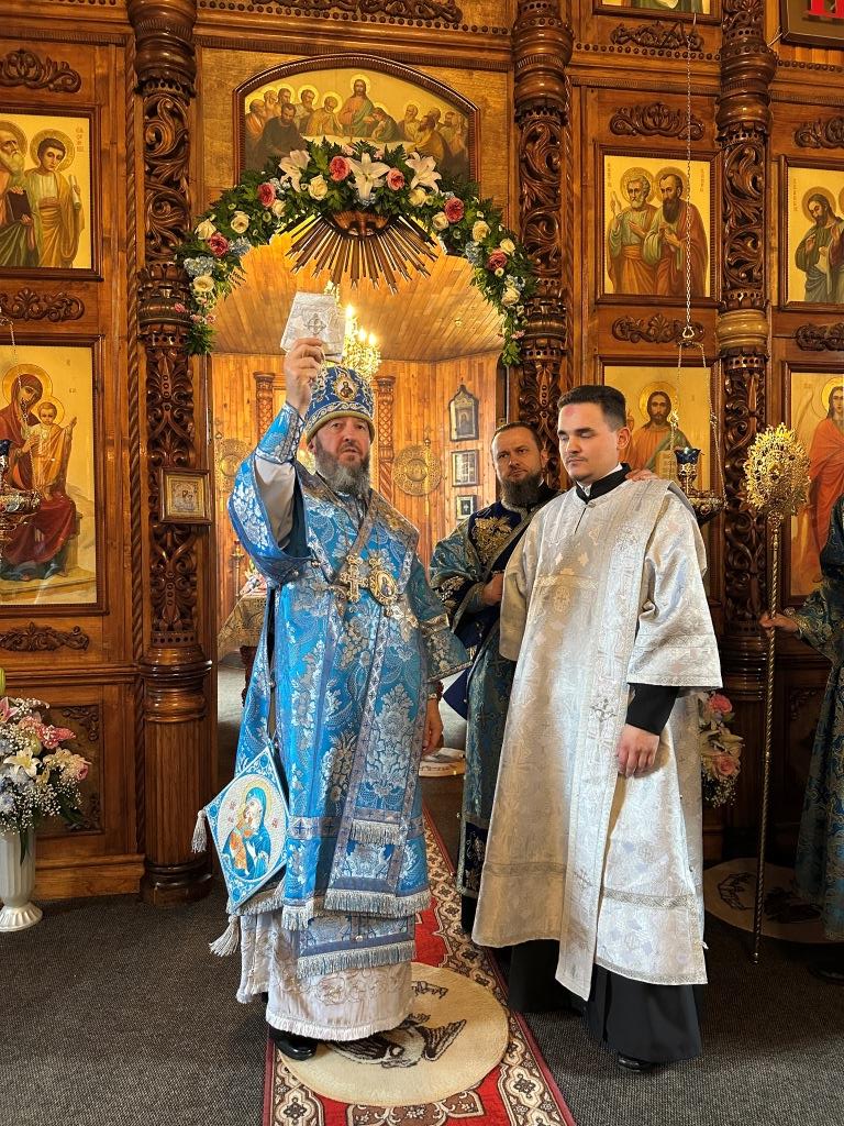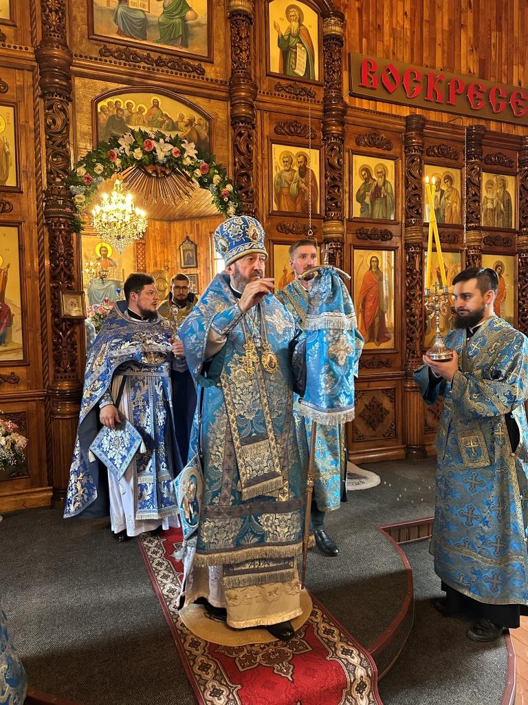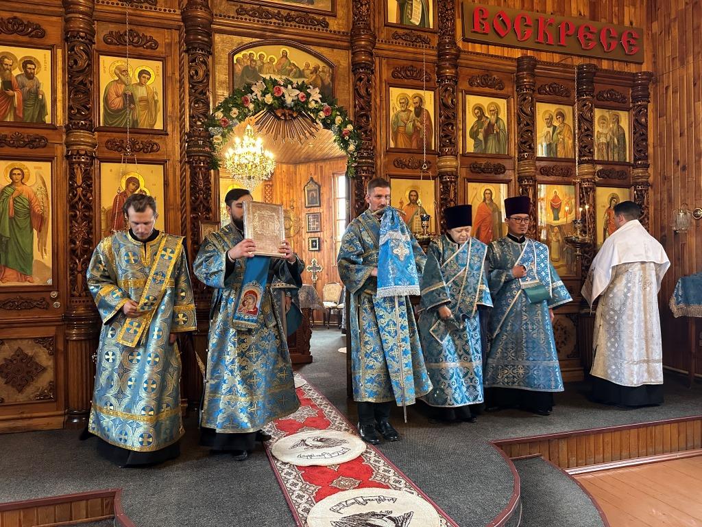 Во время Божественной Литургии архиепископ Амфилохий рукоположил в сан диакона иподиакона Кирилла Рамазанова. Перед причастием мирян проповедь произнёс священник Константин Дьяков. Праздничное богослужение завершилось славлением Пресвятой Богородице пред чтимой храмовой иконой.
